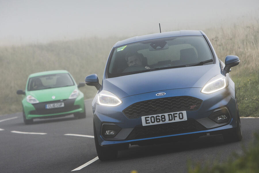 This was certainly the case on a recent back-to-back drive with a former Autocar hot hatch champion, namely a 2010 Renault Sport Clio 200 Cup. The ageing French car lacked a large number of creature comforts that come as standard on our Blue Oval hatch, meaning it was a far less comfortable place in which to be on an icy winter morning. But as soon as the oil temperature was up and the road conditions improved, the 2.0-litre-engined Clio’s natural sporting ability was clear. Its engine, for starters, begged to be revved, while its chassis felt racy and planted compared with the Fiesta ST’s more supple set-up.
